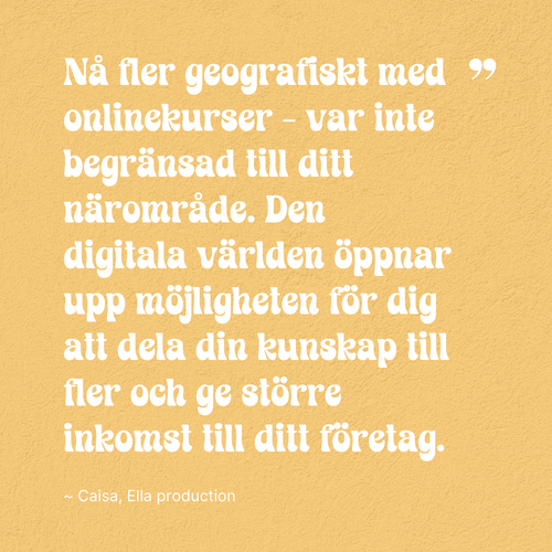 Här finns plats för en introducerande text om dina onlinekurser. Texten ska ge en översikt av kurserna för att hjälpa besökaren att snabbt förstå utbudet. Specificera vilken målgrupp kurserna riktas mot och klargör vad deltagarna kan förvänta sig för resultat genom att gå kursen/kurserna.